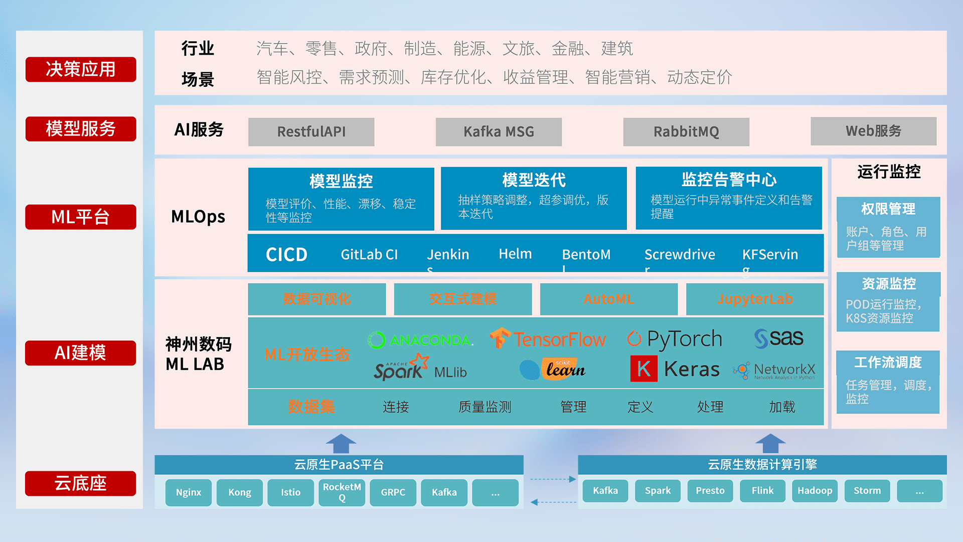 数据+模型双引擎驱动,,,,面向智能服务场景,,快速灵活利用AI技术,,,,支持业务决策,,,助力企业智能化转型破局。。